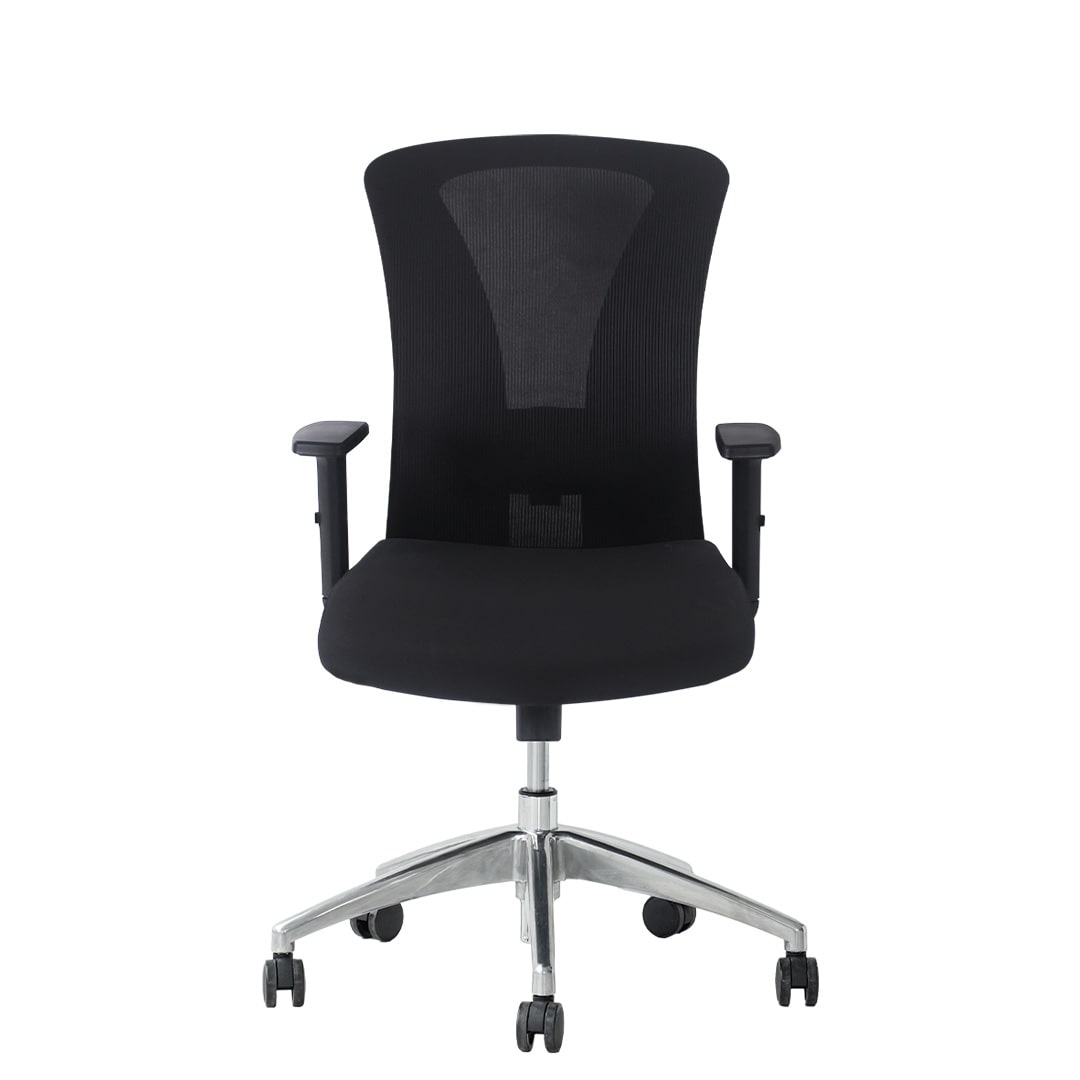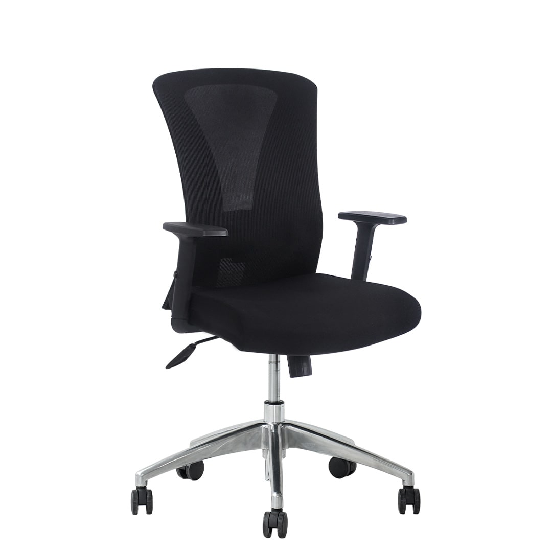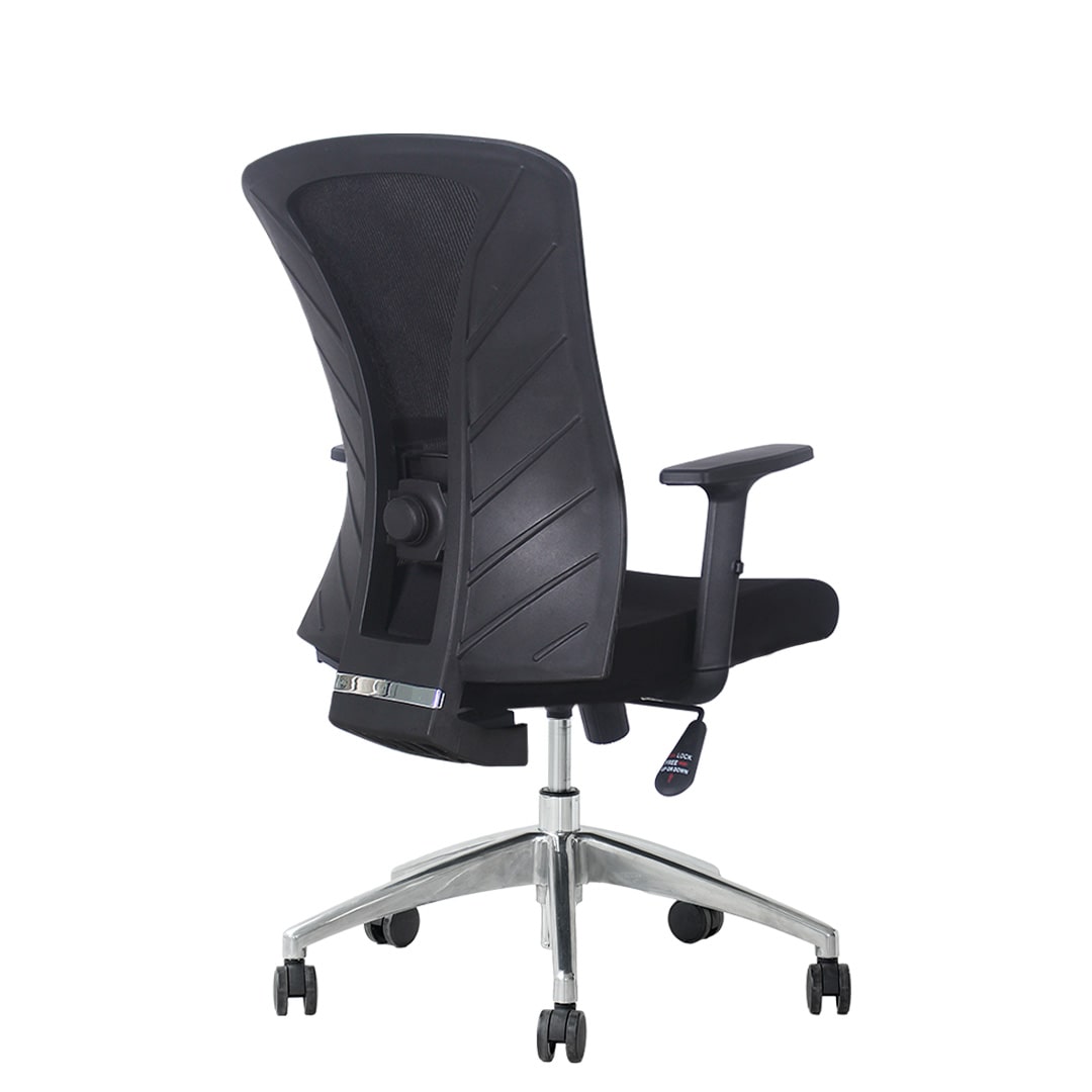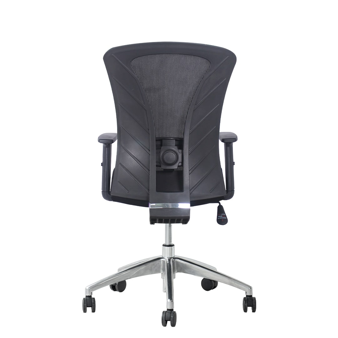• Respaldar mediano de marco negro con malla de nylon negra.
